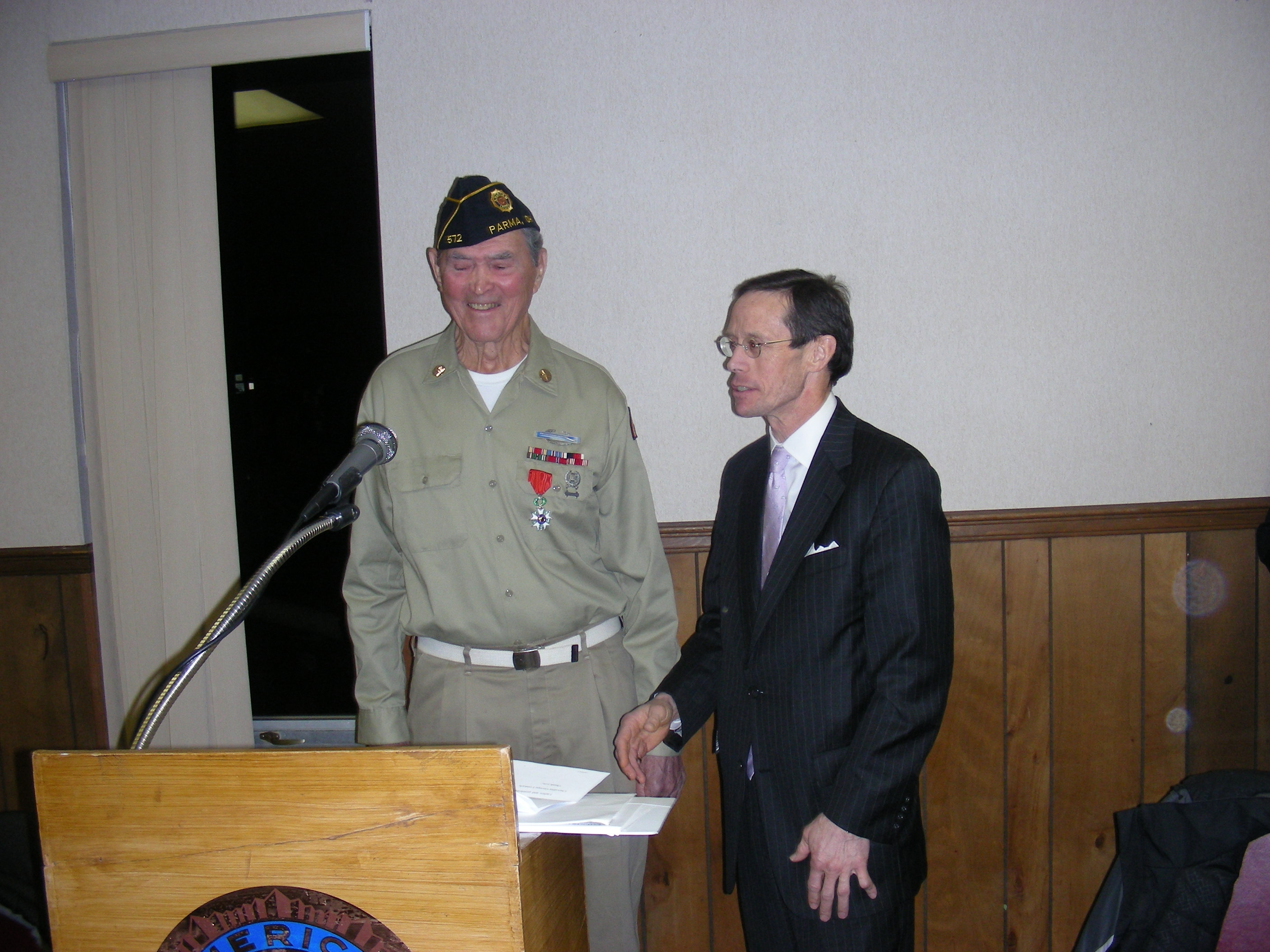 | George wanted to thank his family and friends, The American Legion and The Joseph J. Jacubic Post 572 as well as The Honorary Consul of France Stephen Knerly and Pascale Furlong of the Consulat General De France A Chicago George feels that this medal was not just presented to him but also to his buddies who did not come home. To view article, slide show and video on George at Cleveland.com click on link below: http://www.cleveland.com/parma/index.ssf/2015/01/parma_world_war_ii_veteran_rec.html |