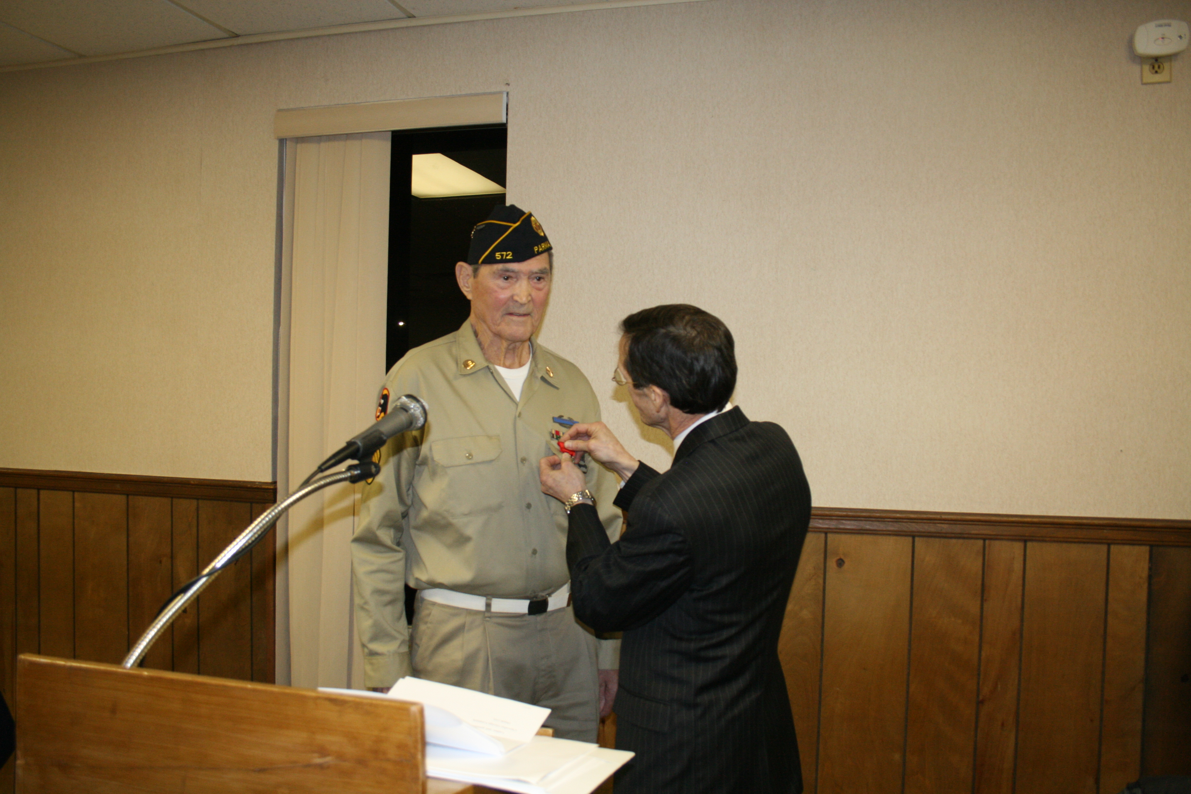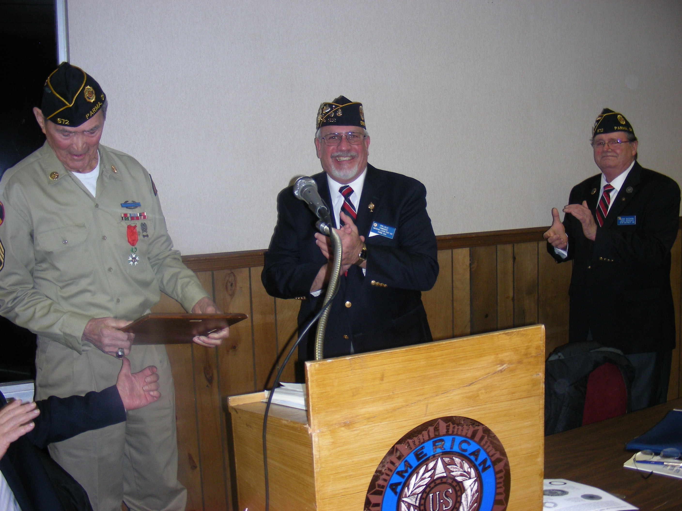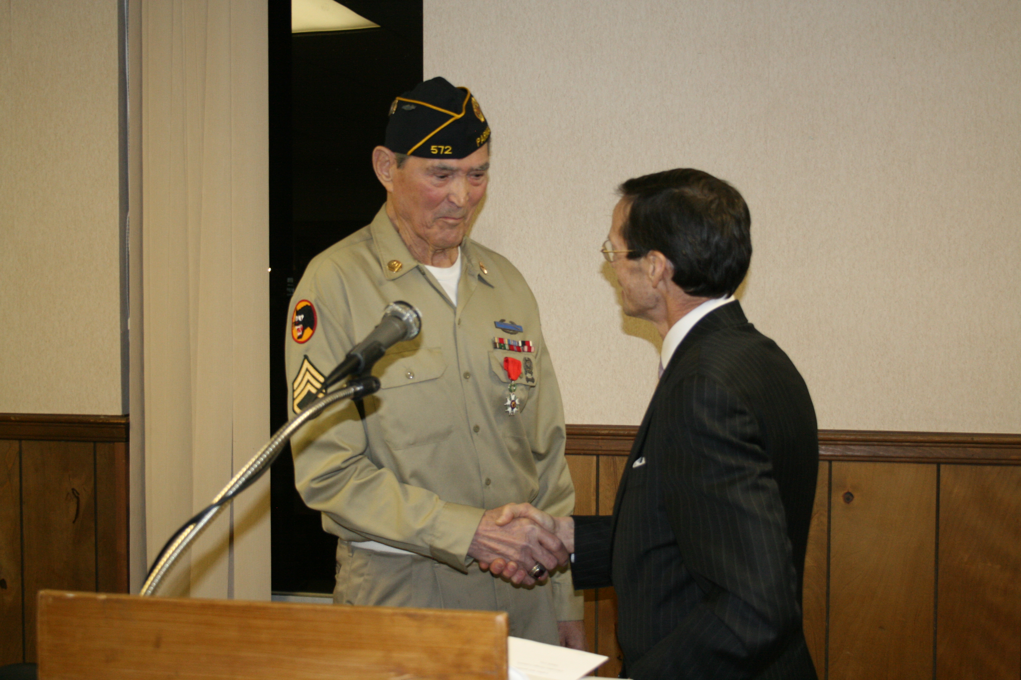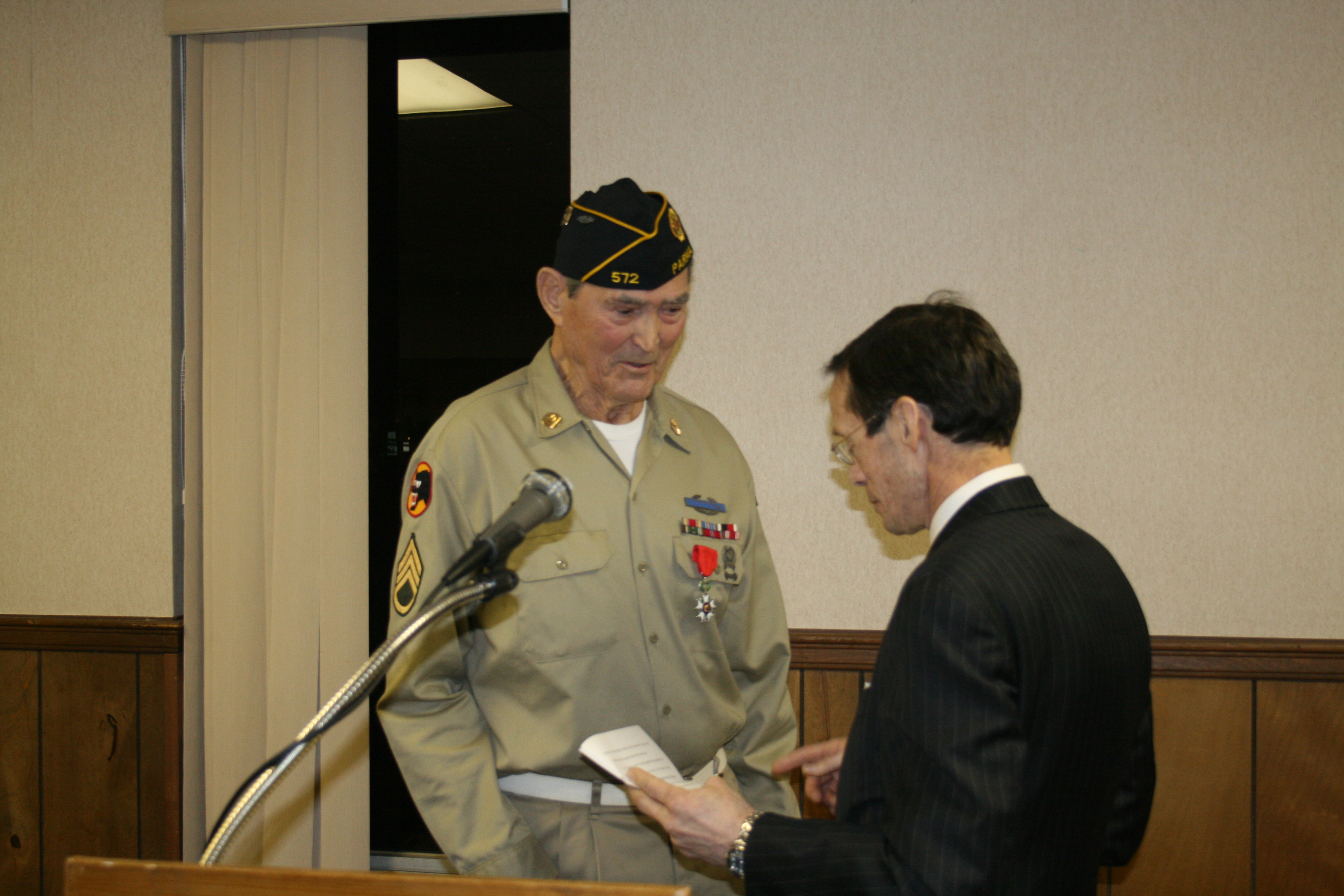 | Knight, The National Order of The Legion of Honor was presented by the Honorary Consul of France Stephen "Josh" Knerly representing The Republic of France to George Lizanich for his actions to liberate France while serving in the 66th Division in Northern France December 1944 to May 1945 Ceremony was conducted at Post 572 on December 8, 2014 |